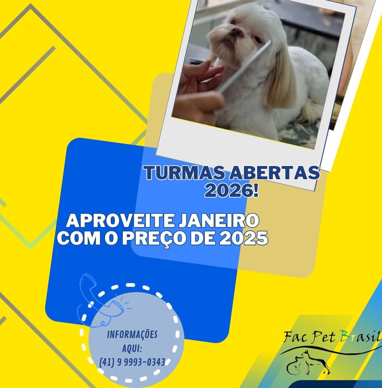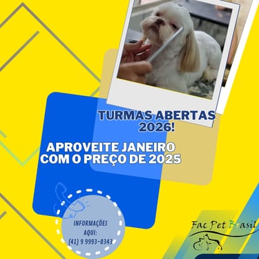 A Fac Pet Brasil oferece 33 opções de Cursos, incluindo banho e tosa, especializações, adestramento, recreação canina(creche), consultoria e auxiliar veterinário.