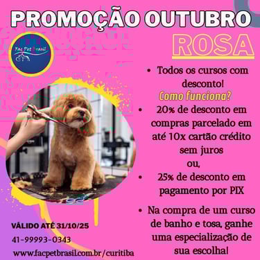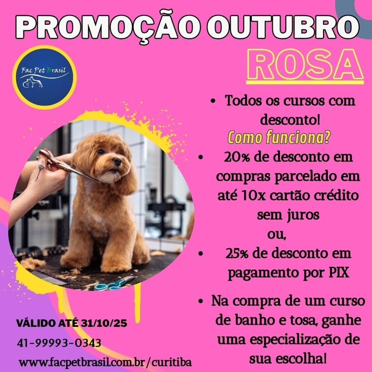 Há mais de 20 anos, a Fac Pet Brasil, oferece cursos de banho e tosa e estética canina em Curitiba - Paraná.